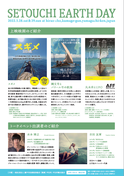 平生町で5月28日(土)-29日(日)の両日に平生町内の3カ所で開催されます。地球に感謝する日としてアースデイを開催。海に関わることがテーマとした催し内容になっているようです。
