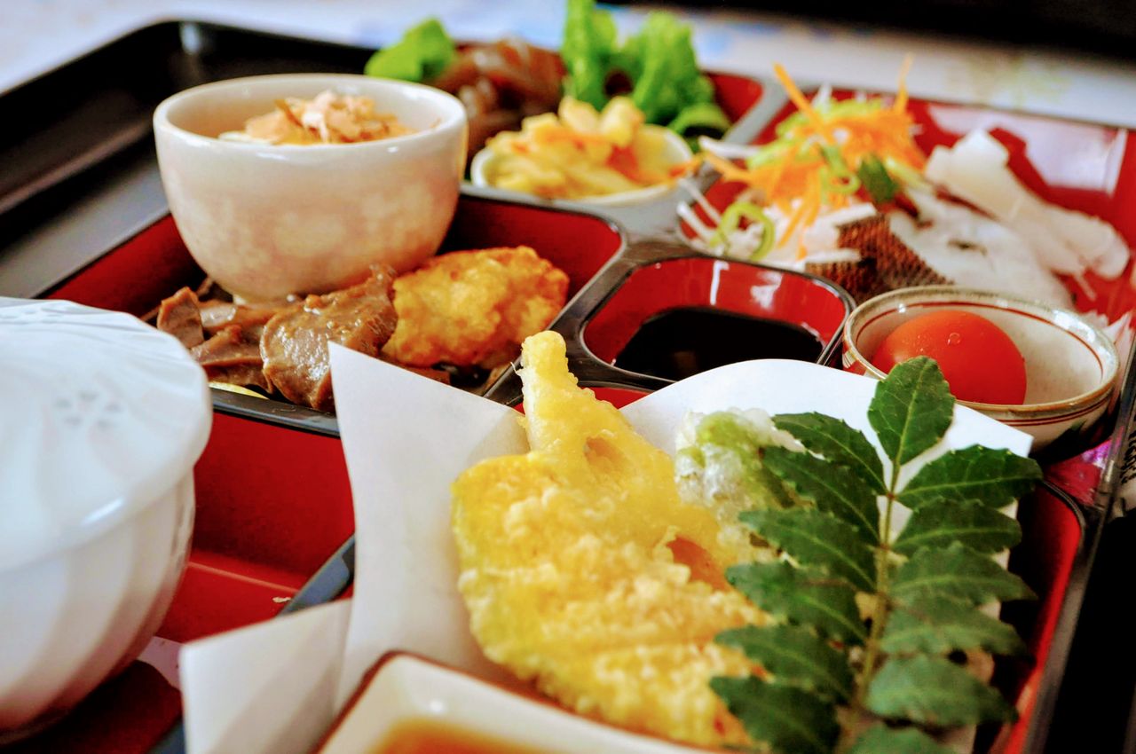 前日までの要予約になるが、御膳の注文も可能。(¥1,200)丹念に調理され盛り付けられた御前はとても綺麗で美味しそう。
