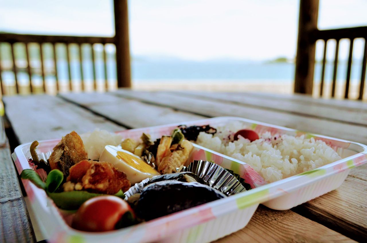潮風感じながら良い天気の元で食べるお弁当はとても美味しい。