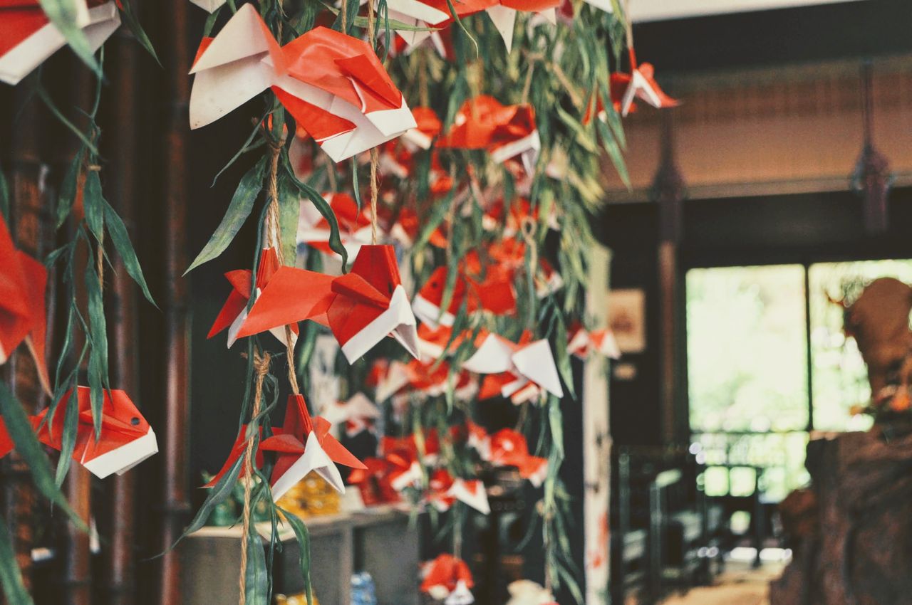沢山の柳井名物金魚が飾りつけられている総本店 店内。