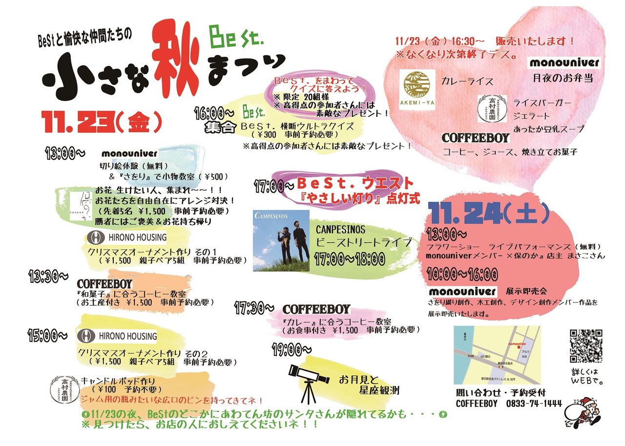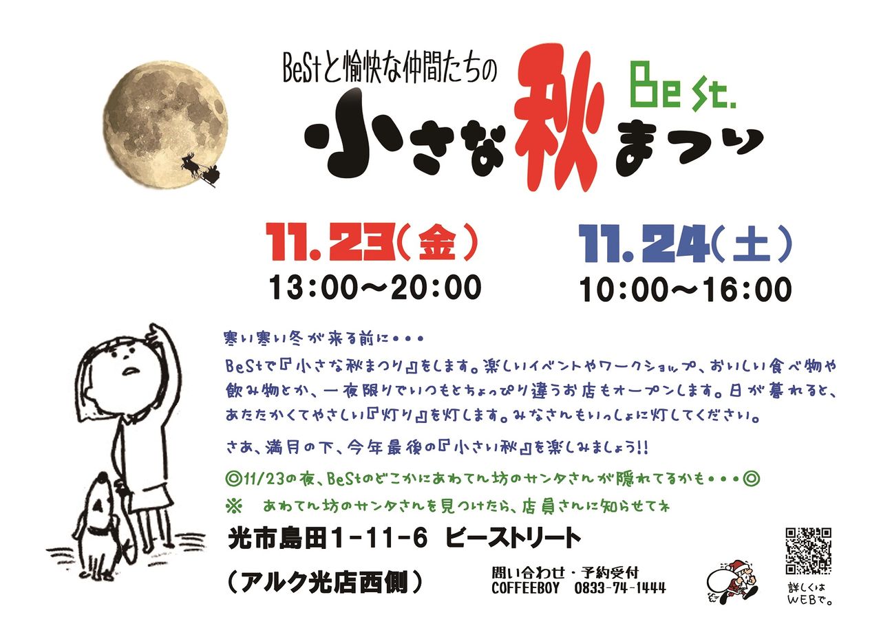 光市島田アルクに併設しているBeSt.(共同組合ベスト:ビーストリート)では、11月23日(金)と24日(土)の両日でイベントが開催されます。