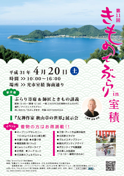 着物を着た人が行き交う華やかな室積海商通りが見れるのは、今年は4月20日になるようです。この催しは光商会議所"きものでぶらり実行委員会"が中心となって開催し今年で11回目となる着物を着て楽しむイベント。