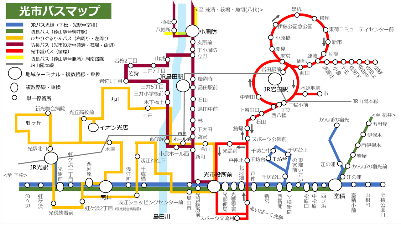防長バス「路線:徳山駅-光駅-柳井駅」(緑)