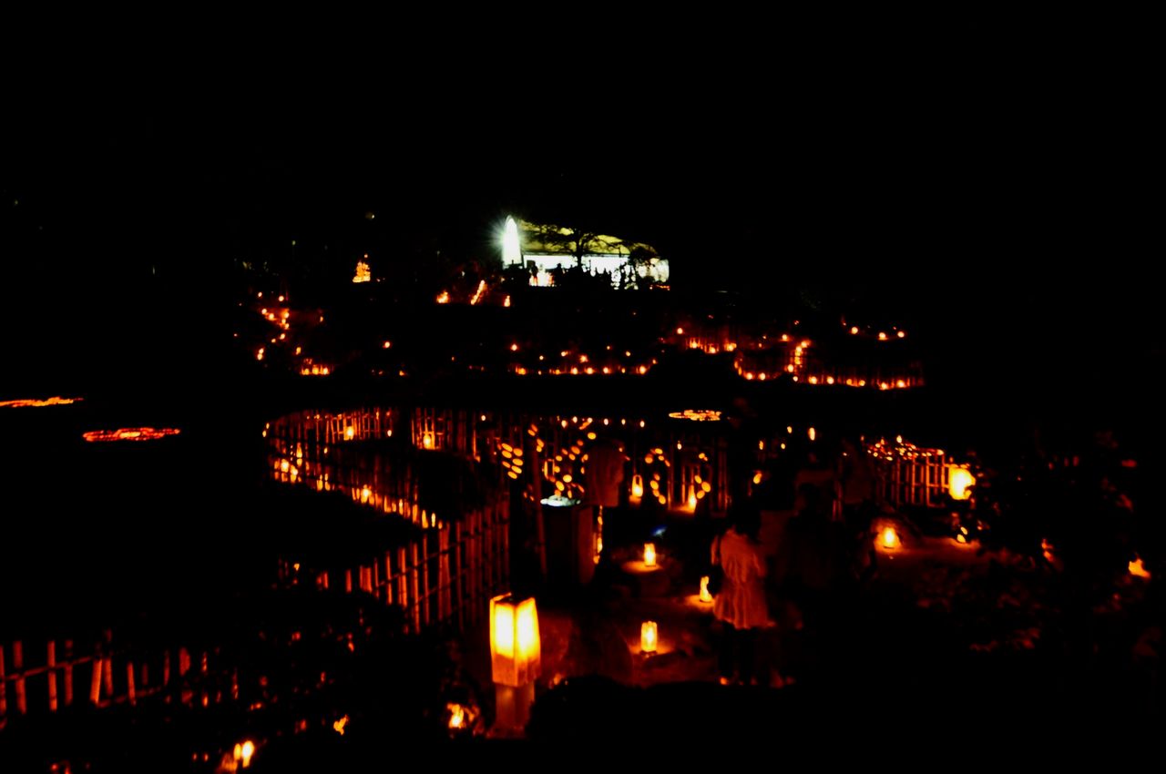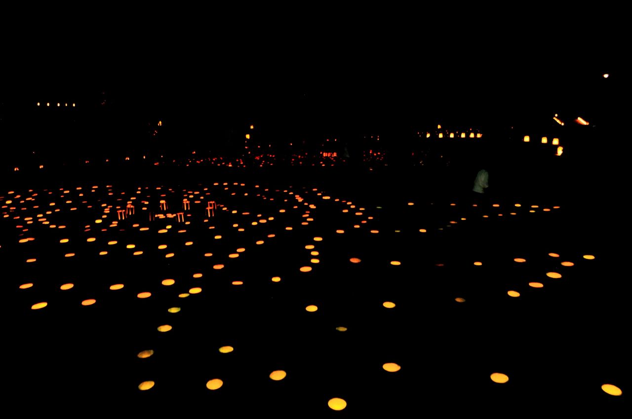 18時の開会と共に開始されますが、日が暮れ始める頃より職員さんの手により徐々に火が灯って行きます。