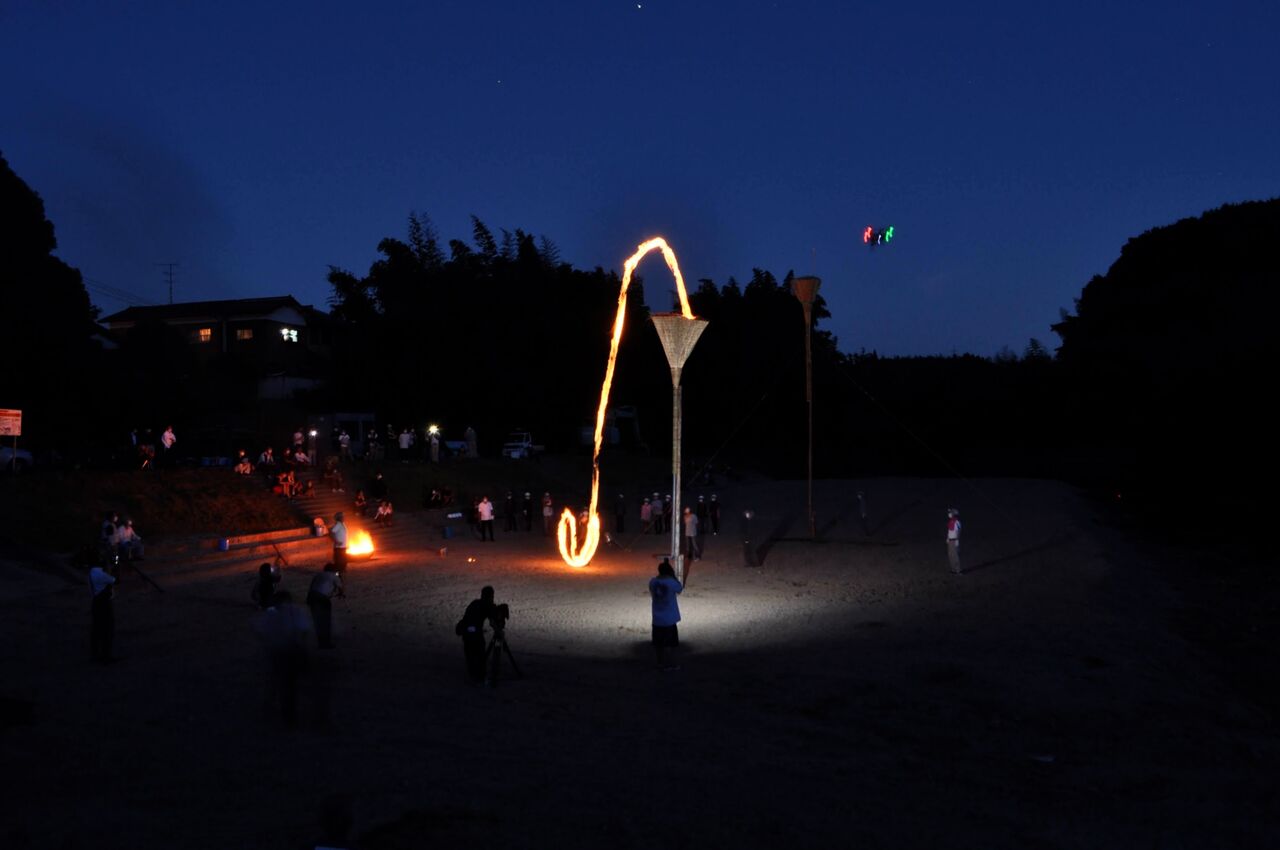周防地区では例年お盆の風物詩となっている周防柱祭。2020年はコロナ禍の影響を考慮し開催は中止と案内されていましたが地元の小学校6年生8名のためにミニ松(約6m、通常10m)を用意し8月14日19時より周防地区のみで小さく開催されました。
