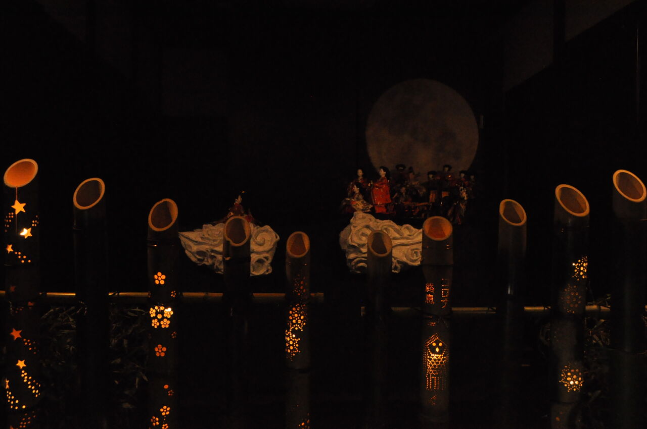 昨年に引き続き、館内では竹取物語をモチーフに、場面場面を雛人形で表現し展示されています。館内スタッフによる手作りで展示は圧巻です。