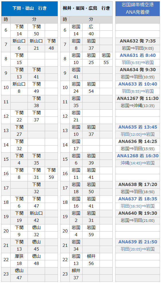 (ANA635羽田発11:45⇒13:25、ANA636岩国発14:10⇒15:40)