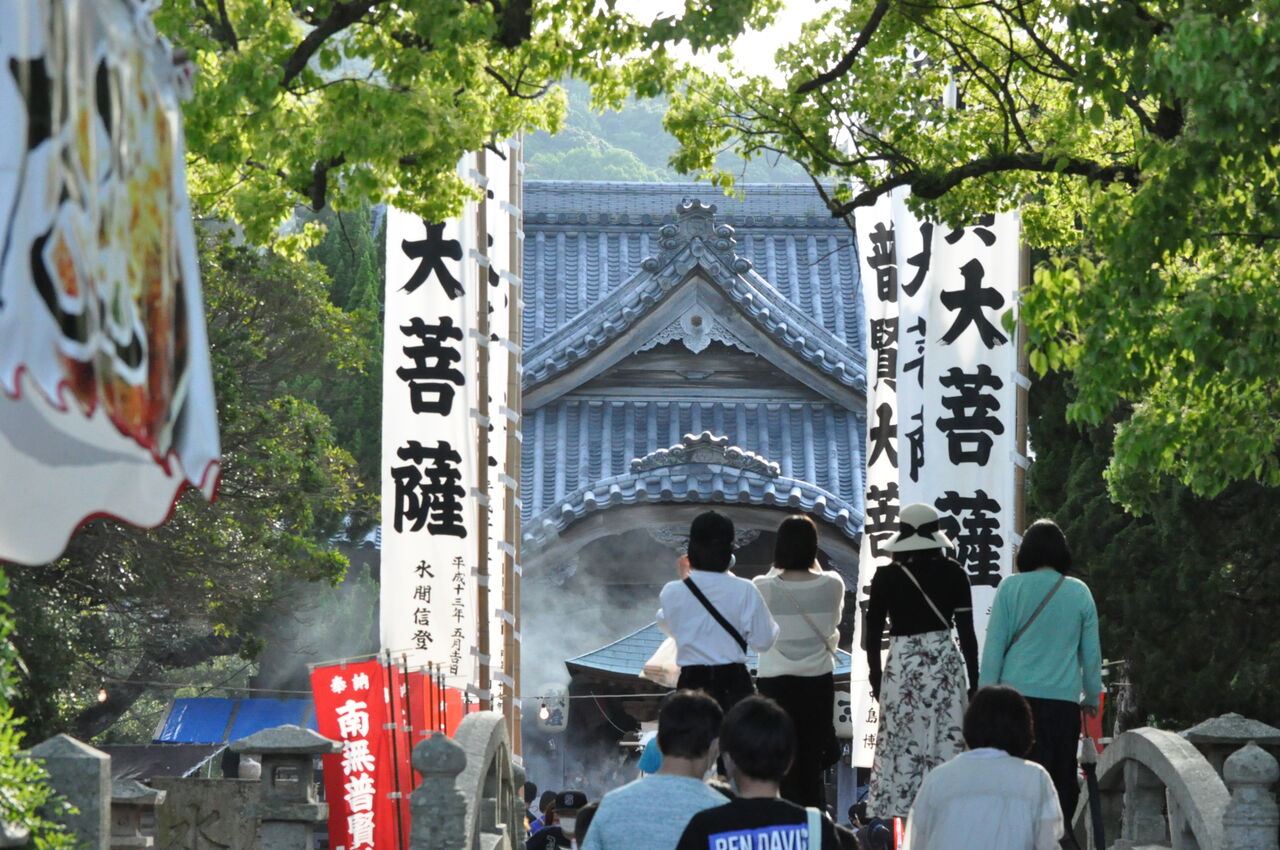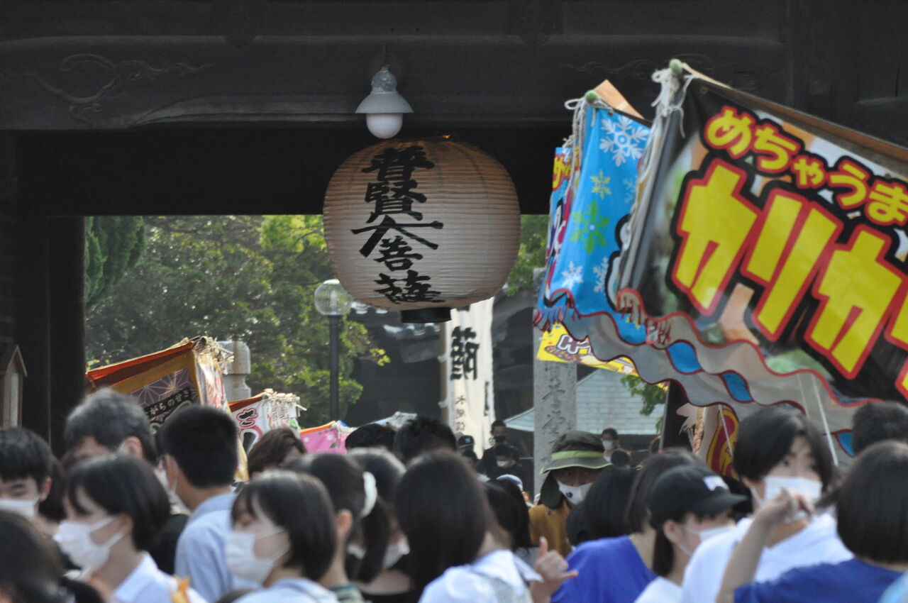 光市室積にある普賢寺の縁日では、所謂「普賢市」が5月14日と15日の両日で室積普賢寺境内と早長八幡宮までの海商通りで開催されます。この「市」は江戸中期から始まったと言われ近年では4−5万人の人出が出る他、普賢寺山門界隈から海商通りを200余りの出店が埋め尽くすように立ち並ぶ大きな縁日となっています。開催日 2023年5月14日(日)~15日(月)