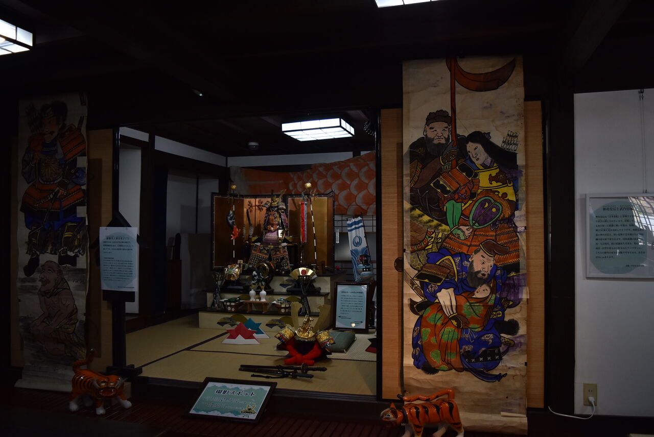 また、寄贈された古い佇まいの「のぼり」が兜を囲むように配置され、この幟(のぼり)は見る価値アリとなっています。