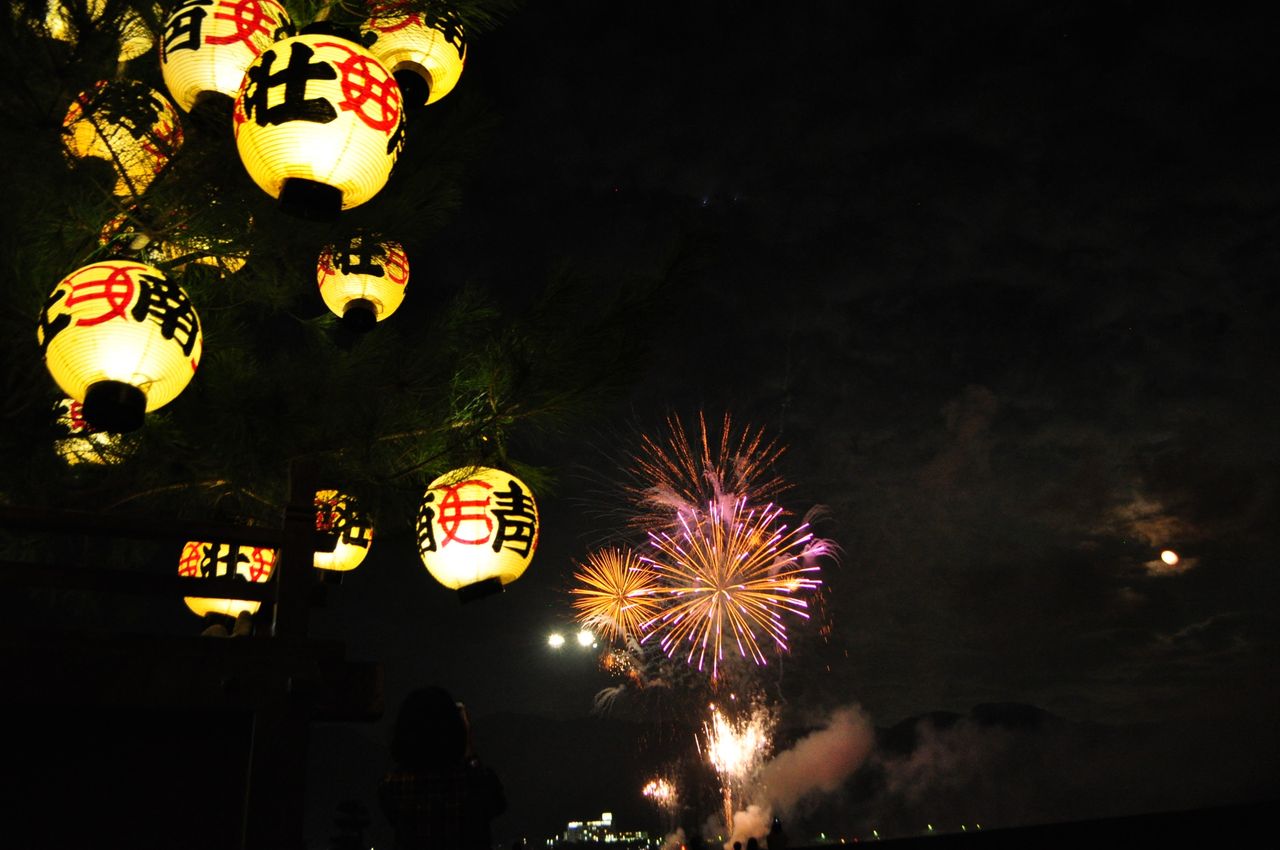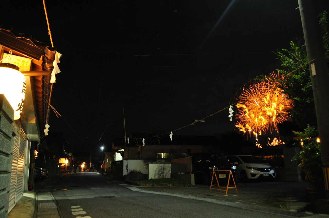 町屋風情が残る「海商通り」と花火のコントラストはとてもお似合いですね。