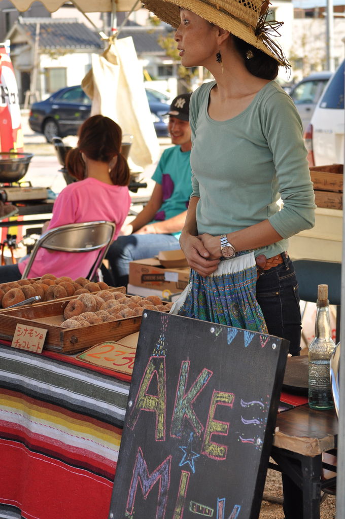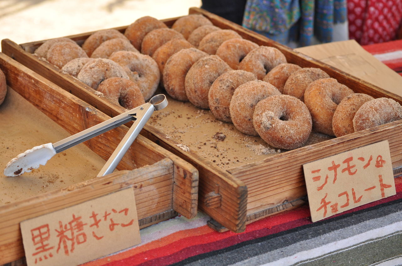 その後、ドーナツを発見したためAKEMI-Ya Umiさんが出していたドーナツ「黒糖きなこ」と「シナモンチョコレート」と美人さんをパシャリ。