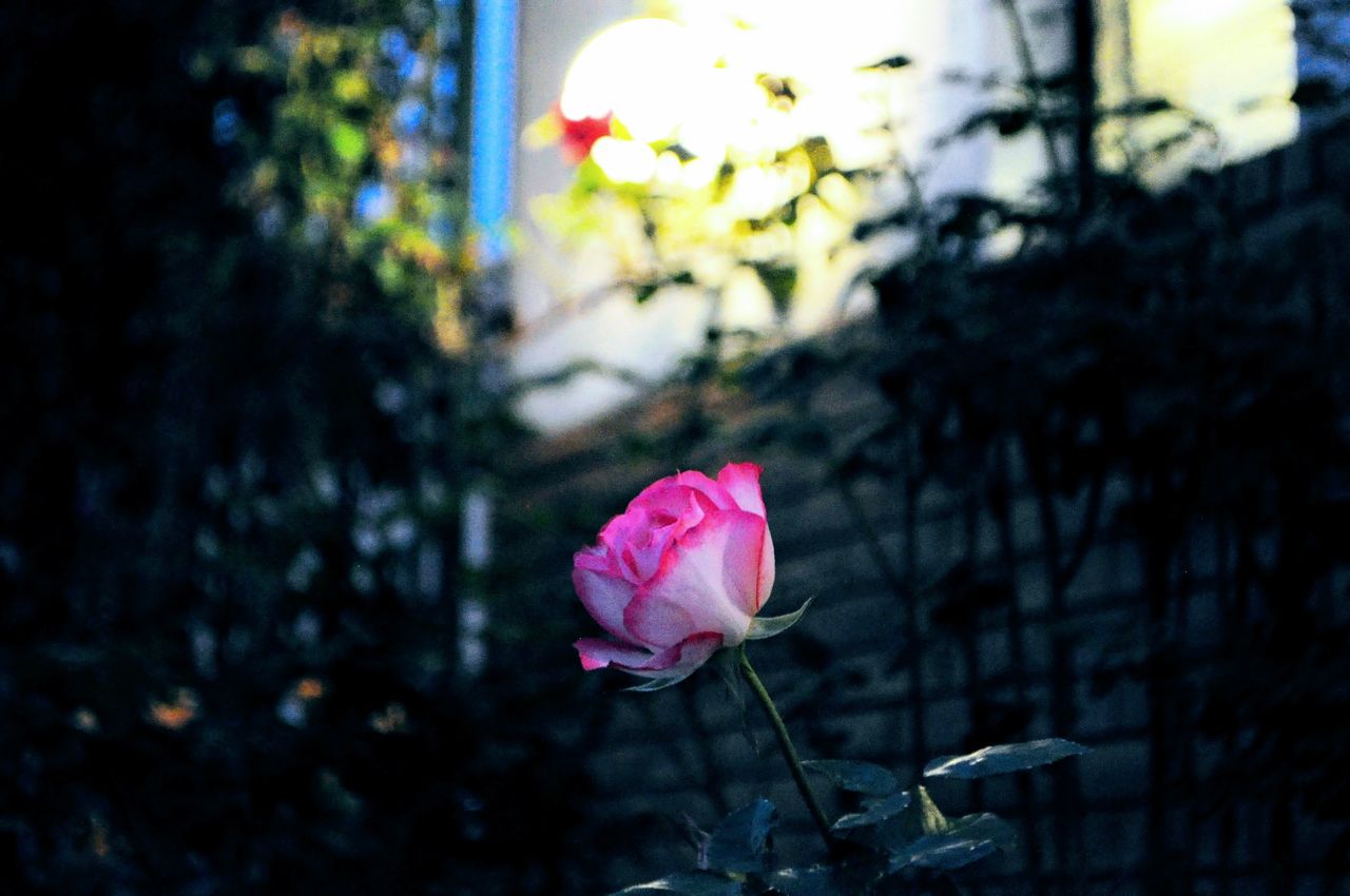 夜の薔薇も意外に乙なもので、撮影した日の日没後に撮った写真ですが、ご覧ください。