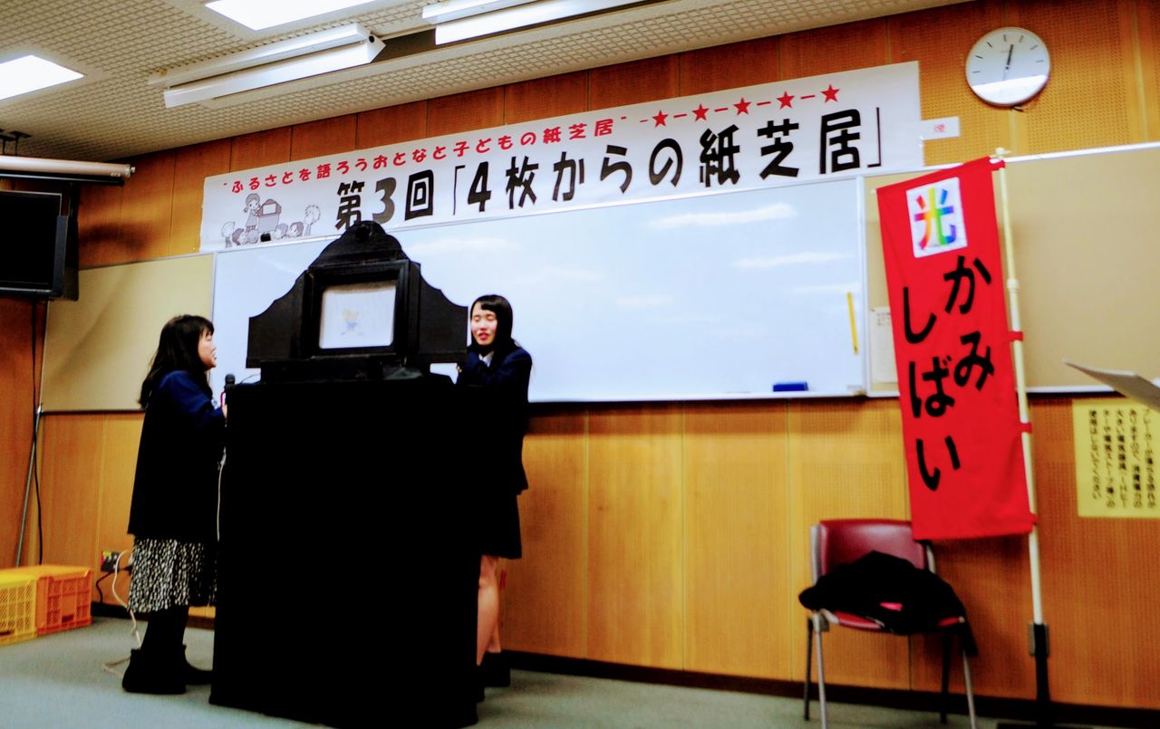 本日(1月6日)は光市では成人式が執り行われましたが、その隣にある地域づくり支援センターでは、光紙芝居さんによる「4枚からの紙芝居」発表上演大会が行われていました。