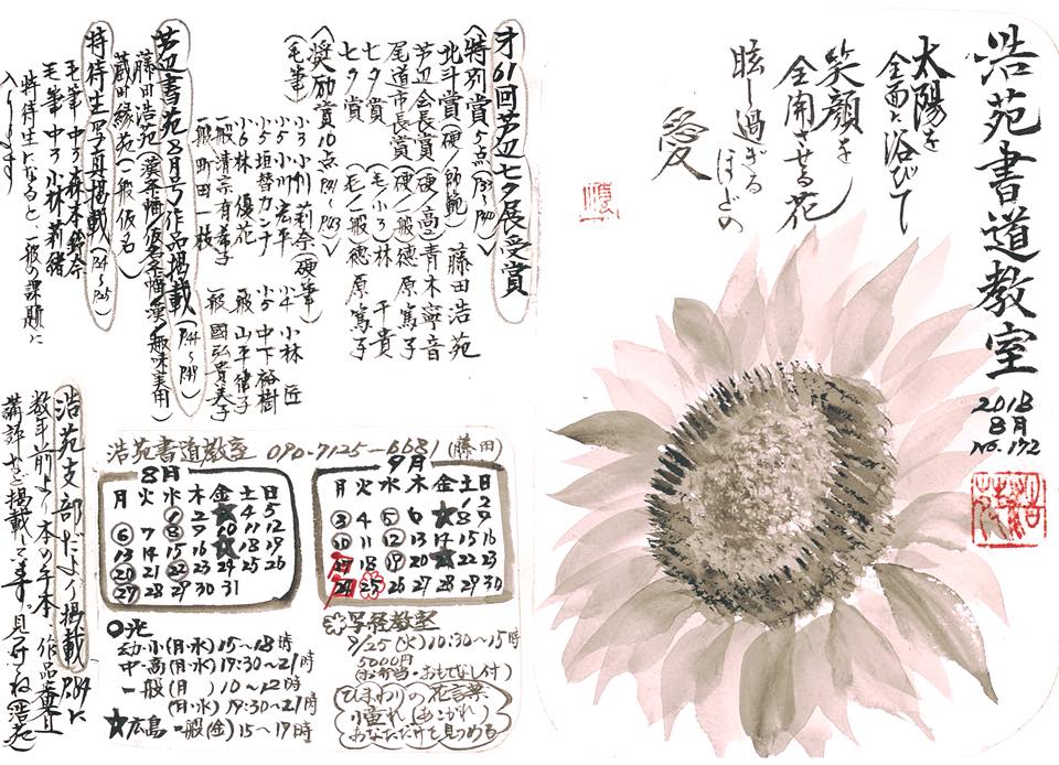 浩苑書道教室のスケジュール(8月、9月)