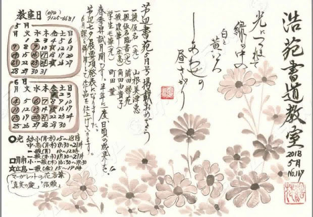 浩苑書道教室のスケジュール(5月、6月)