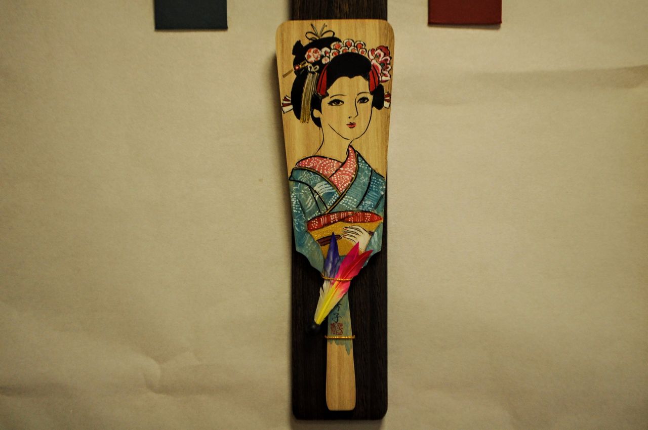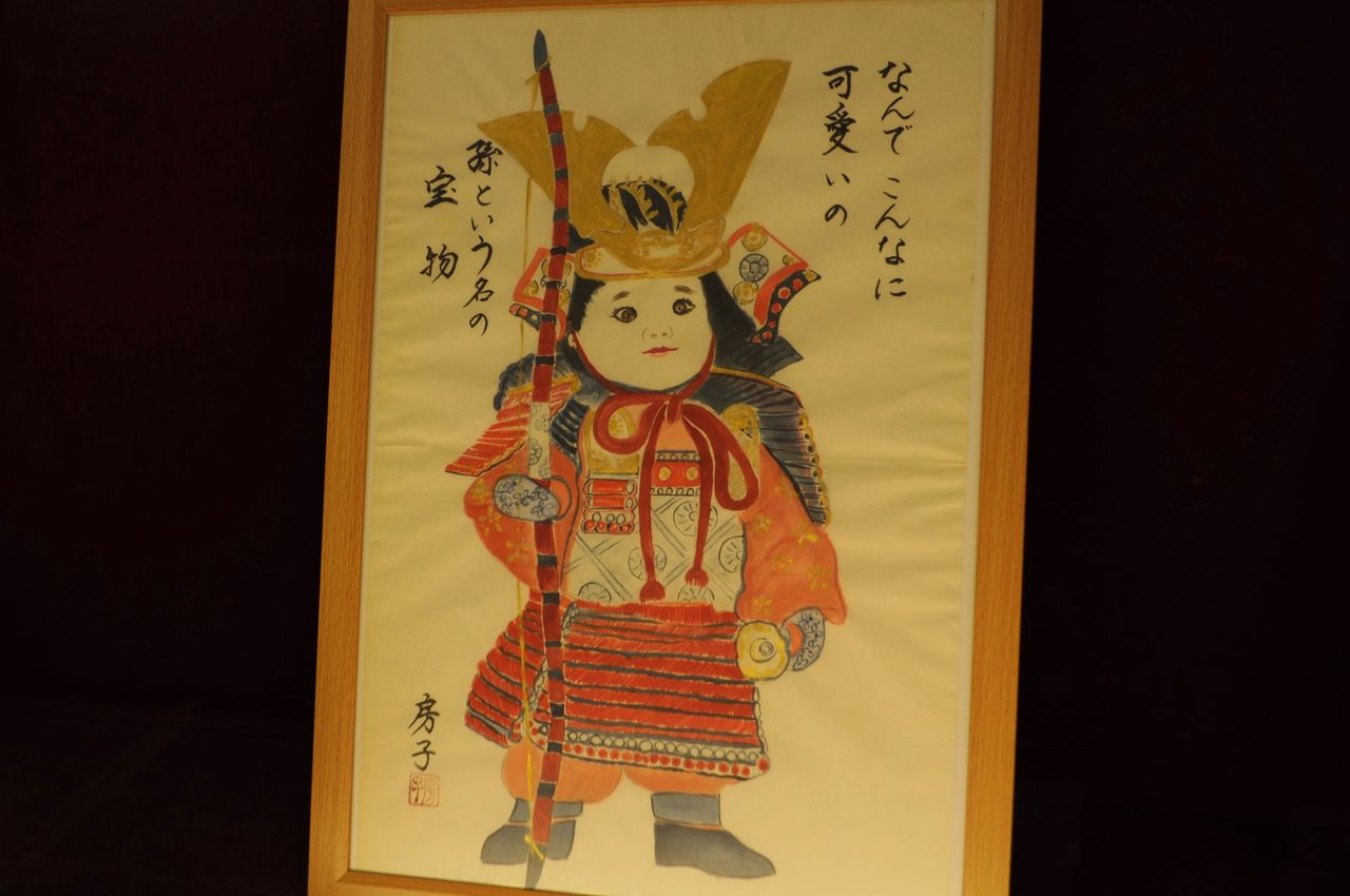 顔料を使った作品で、絵葉書以外に最近ではTシャツに画いたり羽子板に画いたり、そのバリエーションは様々。
