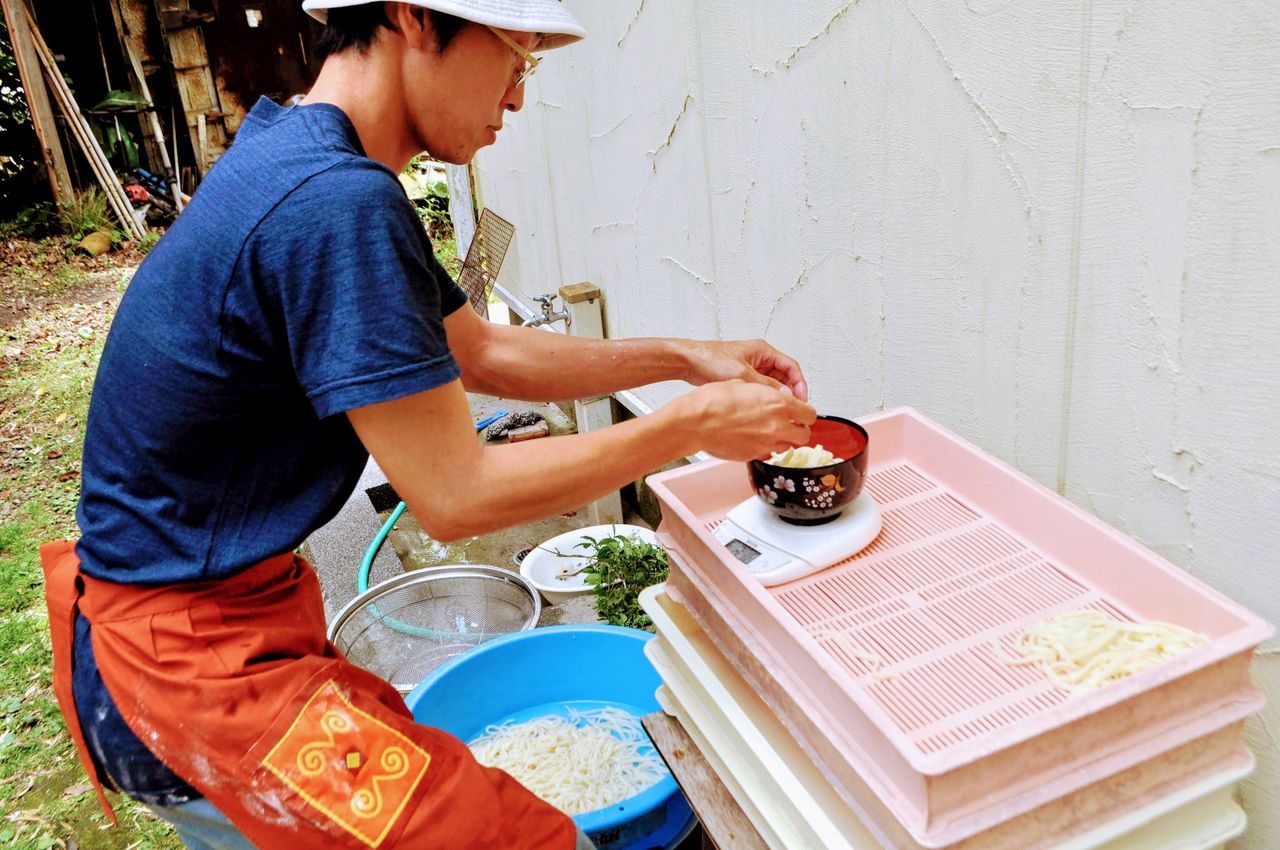 周防大島で手打ちうどんをされている泉本氏。以前は光市のBeStで定期的にうどんの生麺を販売されていたので光市にはファンが多い。