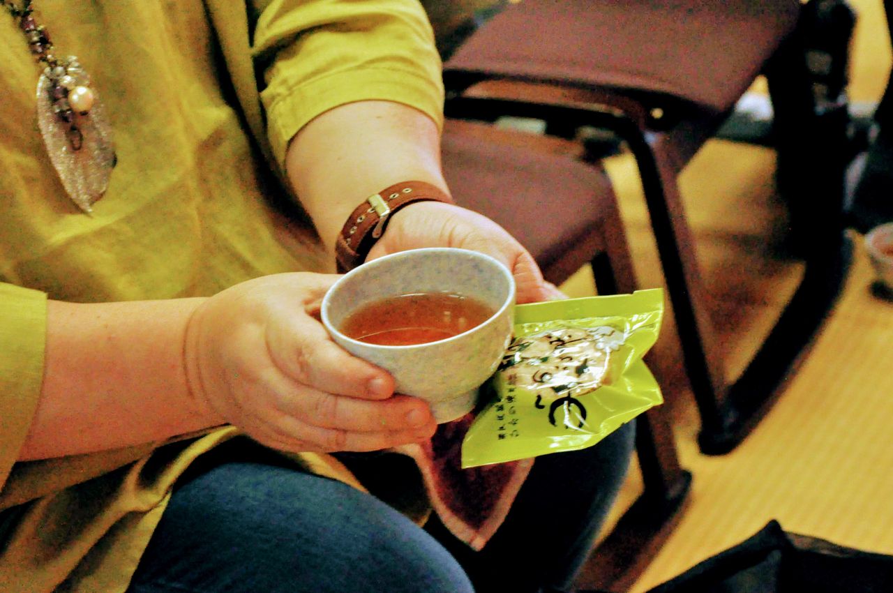 浅江地区にあるパティスリーミヤオさんから「虹の松原」如宝寺さんからは冷たいお茶の差し入れが有りました。蒸し暑くなった中、とても助かります。この日は、約80余名が足を運ばれたのですが、毎回差し入れられているとお聞きしました。